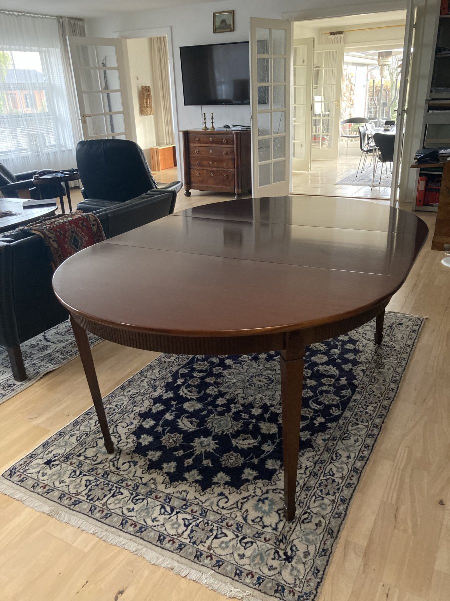 Rund bord med fleksibel udtræk samt fire indskudsplader heraf en med sarg