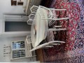 En skænk med fire skuffer flankeret af to gange to låger bag hvilken hylder